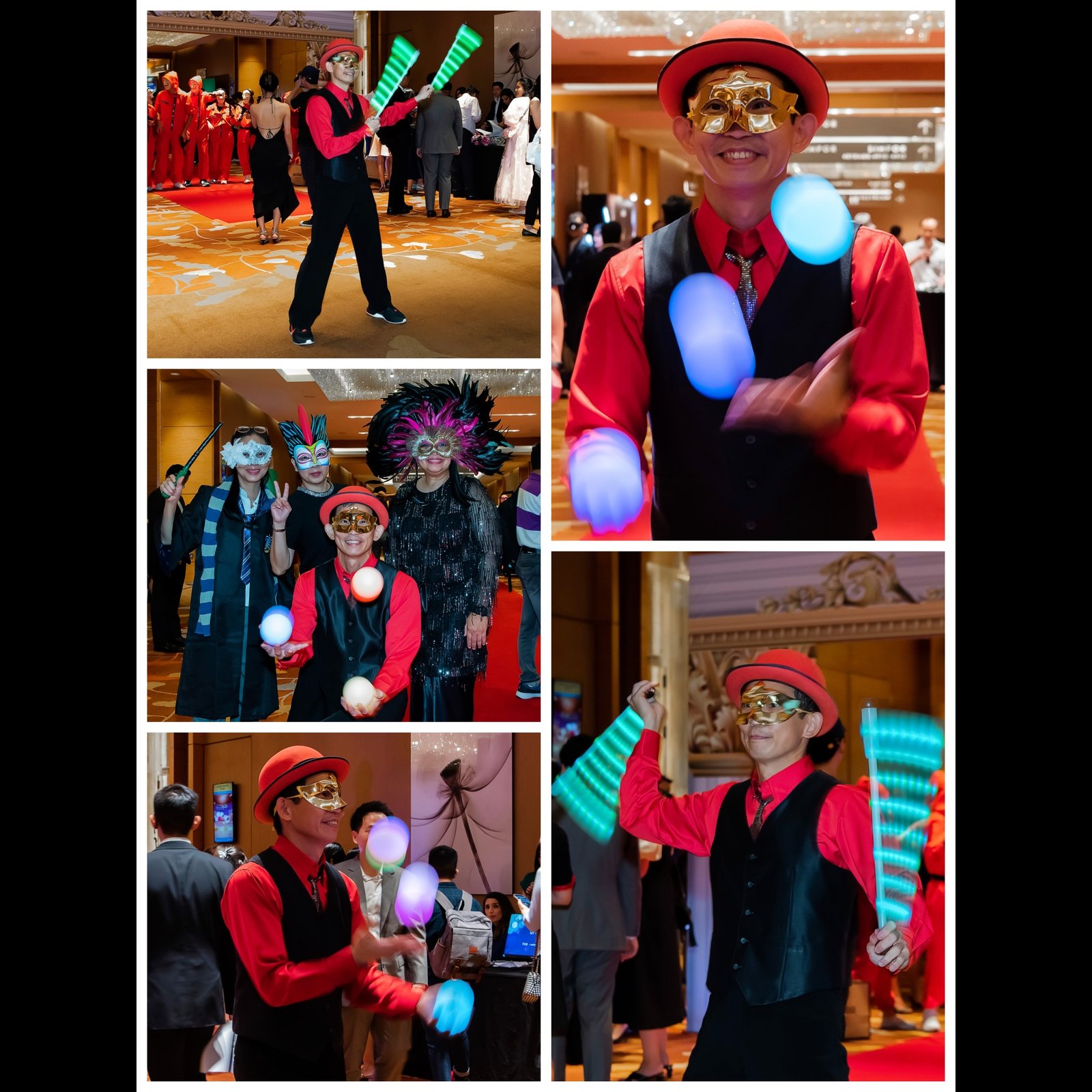 JimmyJuggler entertains your guests as he walks about your venue. He juggles with Multicolour LED Globes. Amazing colourful patterns of light!